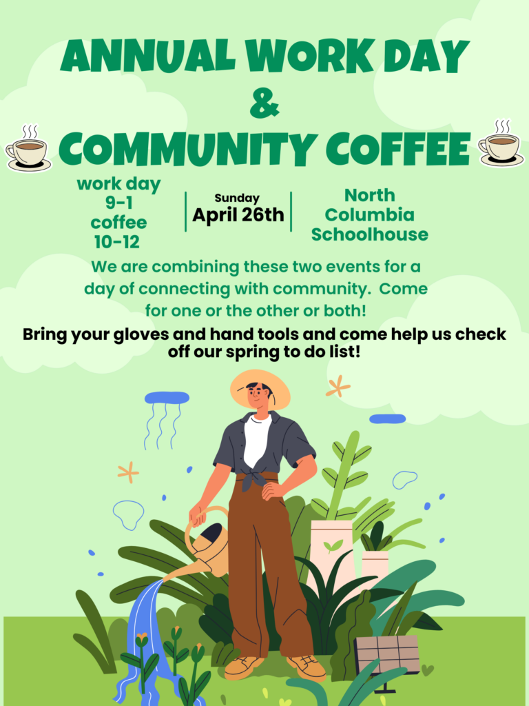 With one part-time employee, the Schoolhouse depends on volunteer labor. We welcome help with events, mailings, baking, maintenance and workdays, office tasks, and many other jobs. Volunteering is a great opportunity to get involved in the community and meet new friends and neighbors. It’s really a lot of fun! If you are interested, please sign up here.